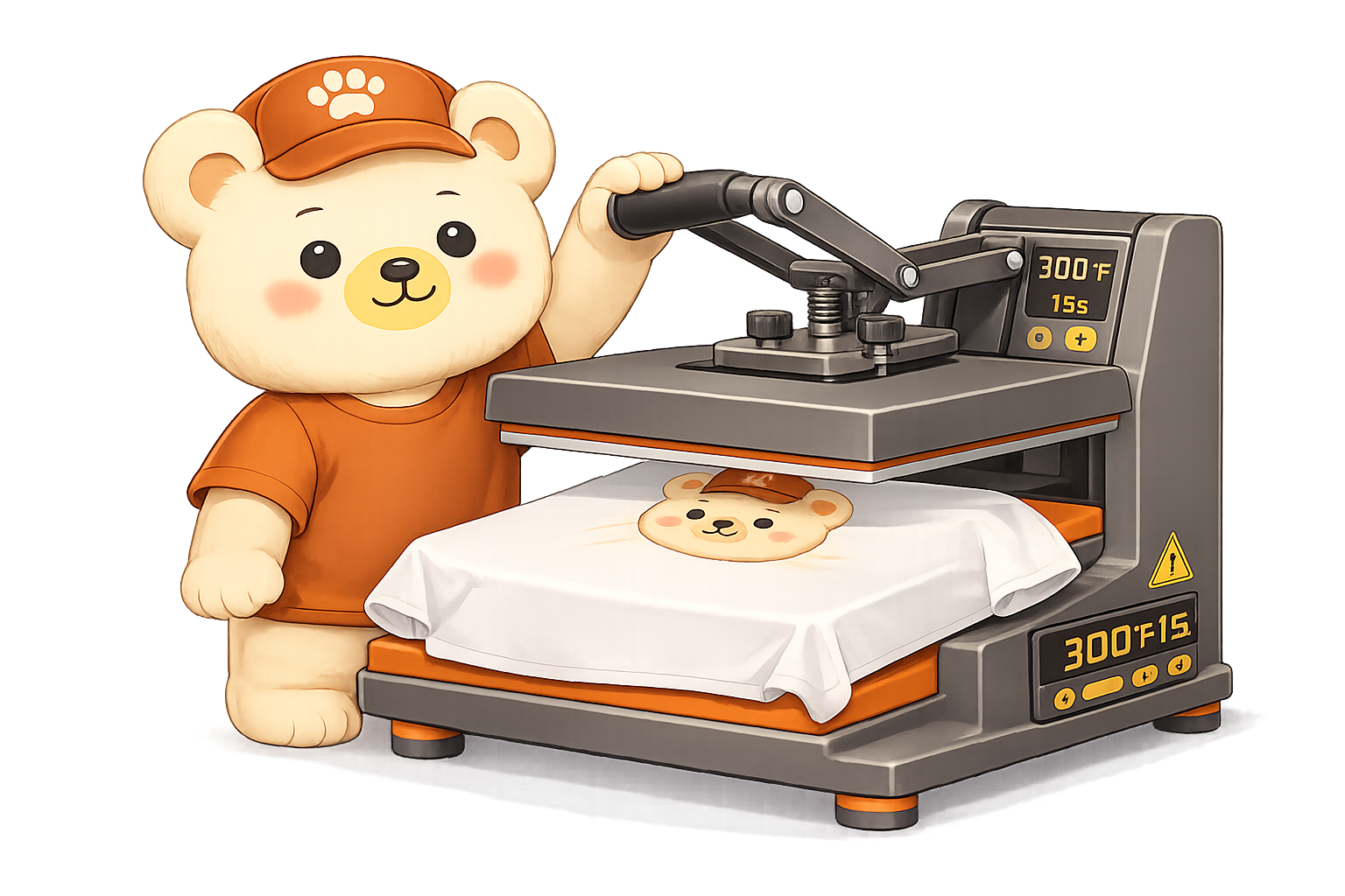 Set your heat press to 300°F (149°C). Press for 10–15 seconds with medium pressure, Allow the transfer to cool, then cold peel, Finish with a second press for 10 seconds for best results.