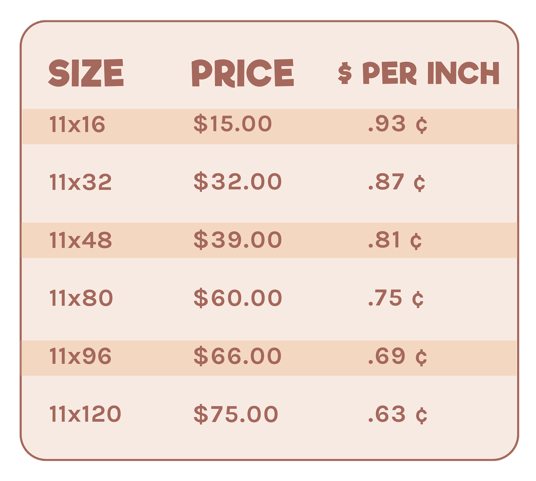 Our UV Gang Sheets range from 11x16 - 11x120!